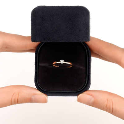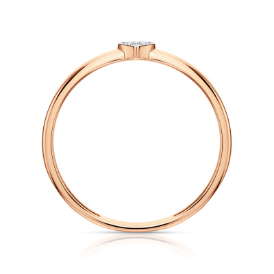 Кольцо с 3 бриллиантами природными, 0.02 карат, огранка круг 17 граней, цвет 2, чистота 2, тип огранки А; Розовое золото 585 пробы.