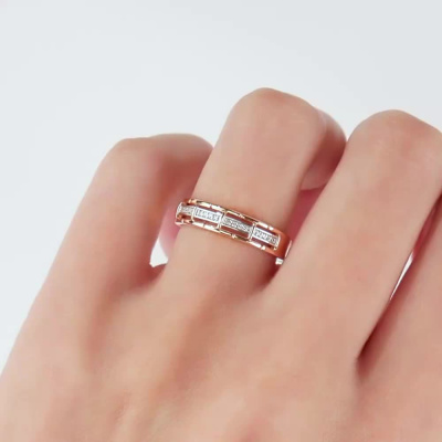 Кольцо с 16 бриллиантами природными, 0.02 карат, огранка круг 17 граней, цвет 2, чистота 2, тип огранки Б; Розовое золото 585 пробы.