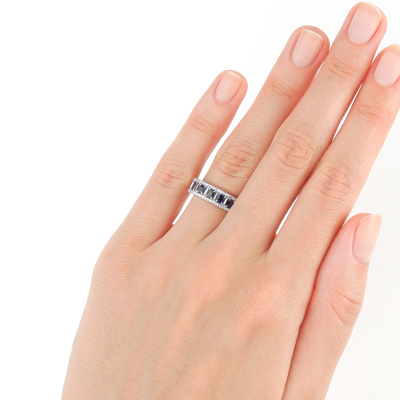 Золотое кольцо с сапфирами и бриллиантами - изысканное украшение, которое подчеркнет вашу индивидуальность и стиль. Кольцо выполнено из белого золота 585 пробы и украшено 42 бриллиантами и 5 сапфирами. Бриллианты имеют огранку круг 17 граней, цвет 2 и чистоту 2, а сапфиры - цвет 2 и чистоту 2. Это кольцо станет прекрасным дополнением к вашему образу и привлечет восхищенные взгляды окружающих. Оно идеально подойдет для особых случаев и станет прекрасным подарком для вас или ваших близких.