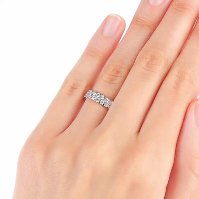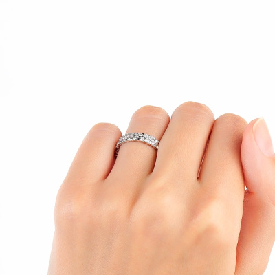 Кольцо с 50 бриллиантами природными, 1.684 карат, огранка круг 57 граней, цвет 3, чистота 6, тип огранки А; Белое золото 585 пробы.