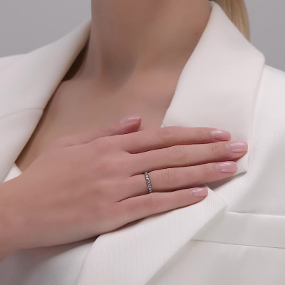 Кольцо «Бриллианты Якутии» с 28 бриллиантами, 0.56 карат, огранка круг 57 граней, цвет 4, чистота 6, тип огранки А; Белое золото 585 пробы.