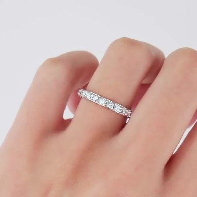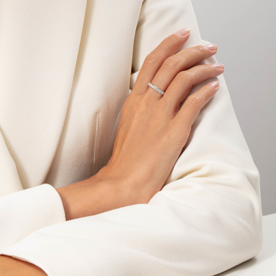 Кольцо с 21 бриллиантом природным, 1.04 карат, огранка круг 57 граней, цвет 3, чистота 6, тип огранки А; Белое золото 585 пробы.