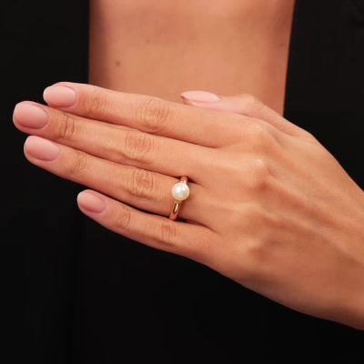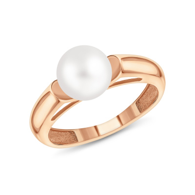 Кольцо с 1 жемчуг культивированный , тип огранки В; Розовое золото 585 пробы.