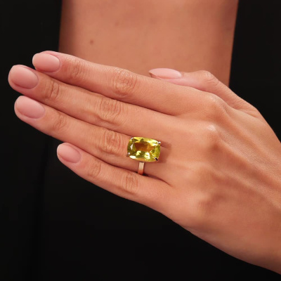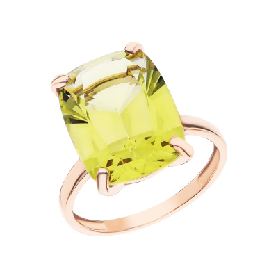 Кольцо с 1 кварцем лимонным, 9.489 карат, тип огранки Б; Розовое золото 585 пробы.