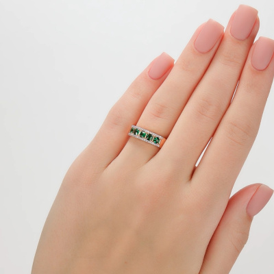 Золотое кольцо с бриллиантами природными и изумрудами выращенными