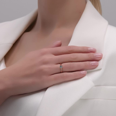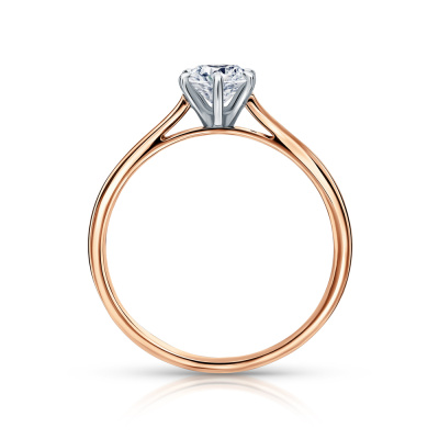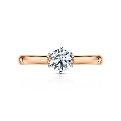 Кольцо с 1 бриллиантом природным, 0.42 карат, огранка круг 57 граней, цвет 4, чистота 7, тип огранки А; Розовое золото 585 пробы.