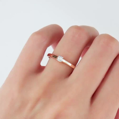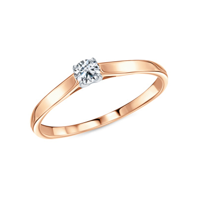 Кольцо с 1 бриллиантом, 0.14 карат, огранка круг 57 граней, цвет 3, чистота 6, тип огранки А; Розовое золото 585 пробы.