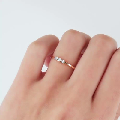 Кольцо с 3 бриллиантами природными, 0.01 карат, огранка круг 17 граней, цвет 2, чистота 2, тип огранки А; Розовое золото 585 пробы.