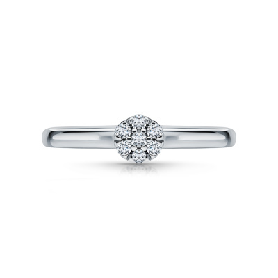 Кольцо с 7 бриллиантами природными, 0.07 карат, огранка круг 57 граней, цвет 3, чистота 6, тип огранки А; Белое золото 585 пробы.
