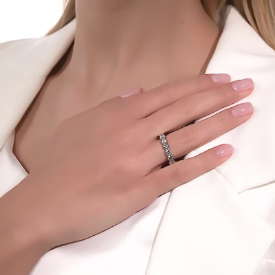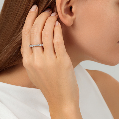 Кольцо «Бриллианты Якутии» с 19 бриллиантами, 2.029 карат, огранка круг 57 граней, цвет 3, чистота 6, тип огранки А; Белое золото 585 пробы.