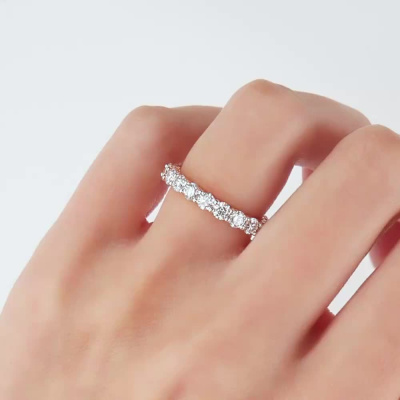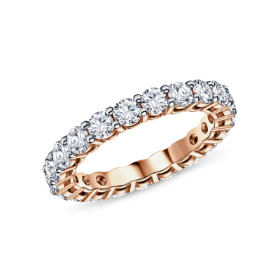 Кольцо с 20 бриллиантами природными, 2.17 карат, огранка круг 57 граней, цвет 3, чистота 6, тип огранки А; Розовое золото 585 пробы.