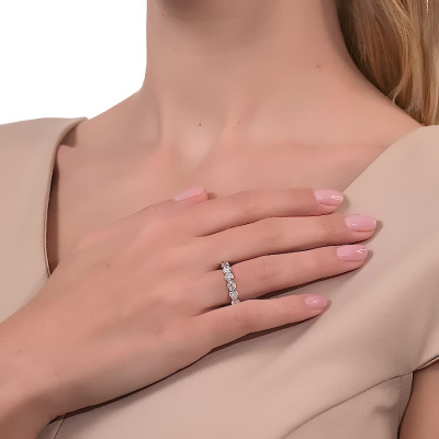 Кольцо с 16 бриллиантами природными, 3.96 карат, огранка круг 57 граней, цвет 3, чистота 6, тип огранки А; Белое золото 585 пробы.