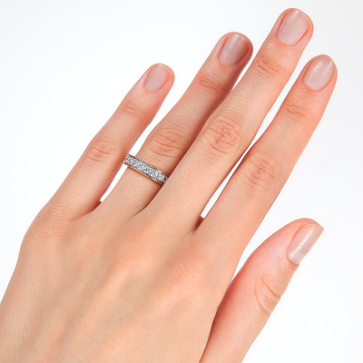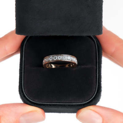 Кольцо с 22 бриллиантами природными, 1.49 карат, огранка круг 57 граней, цвет 3, чистота 6, тип огранки А; 44 бриллиантами природными, 0.085 карат, огранка круг 17 граней, цвет 2, чистота 2, тип огранки Б; Розовое золото 585 пробы.