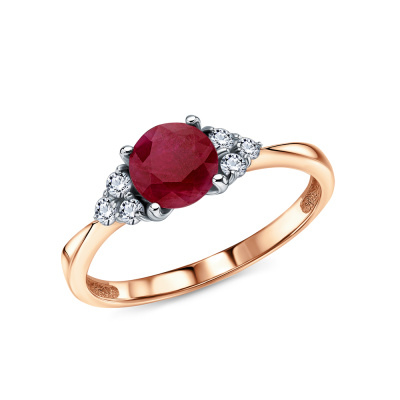 Золотое кольцо с бриллиантами природными и рубином природным