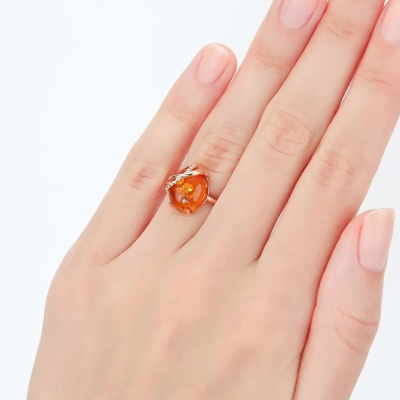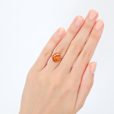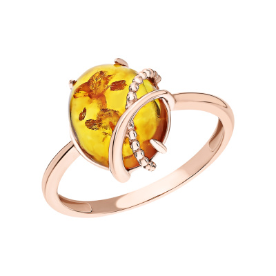 Кольцо с 1 янтарем коричневым природным; Розовое золото 585 пробы.