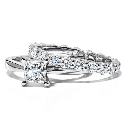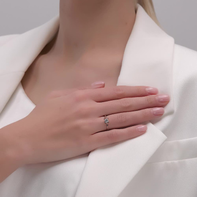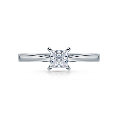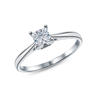 Кольцо с 1 бриллиантом природным, 0.42 карат, огранка принцесса 65 граней, цвет 3, чистота 6, тип огранки А; Белое золото 585 пробы.