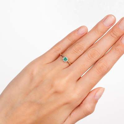 Золотое кольцо с бриллиантами природными и изумрудом выращенным