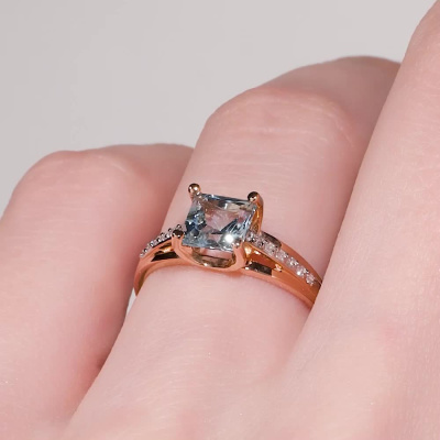 Кольцо из розового золота 585 пробы с 12 бриллиантами. Характеристика камней: • Цвет — 2 • Чистота — 2 • Тип огранки — Б Кроме того, это кольцо украшено одним топазом весом 1.222 карат, огранка также типа Б. Невероятная красота этого украшения покоряет сердца многих женщин.