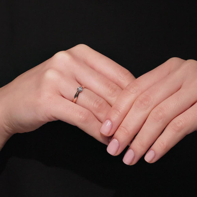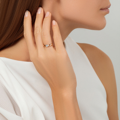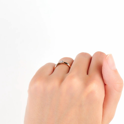 Кольцо с 1 бриллиантом природным, 0.05 карат, огранка круг 57 граней, цвет 3, чистота 6, тип огранки А; Розовое золото 585 пробы.
