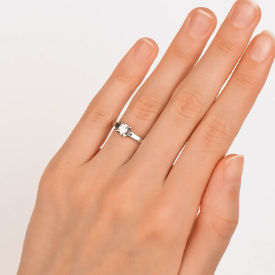 Кольцо с 1 бриллиантом природным, 0.263 карат, огранка круг 57 граней, цвет 4, чистота 7, тип огранки А; Белое золото 585 пробы.