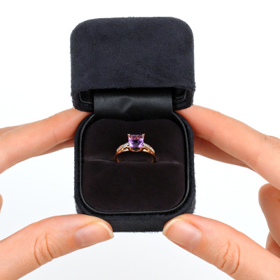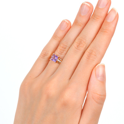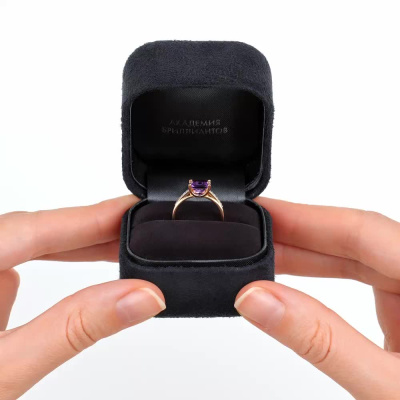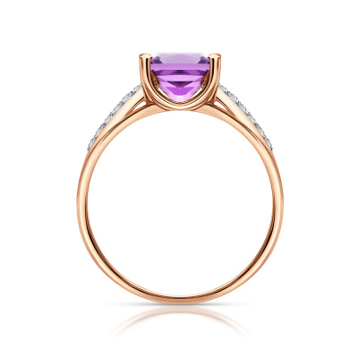 Кольцо с 12 бриллиантами природными, 0.05 карат, огранка круг 17 граней, цвет 2, чистота 2, тип огранки А; 1 аметистом природным, 1.05 карат; Розовое золото 585 пробы.