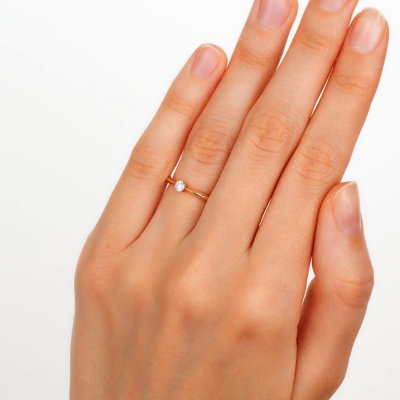 Кольцо с 1 бриллиантом природным, 0.11 карат, огранка круг 57 граней, цвет 3, чистота 6, тип огранки А; Розовое золото 585 пробы.