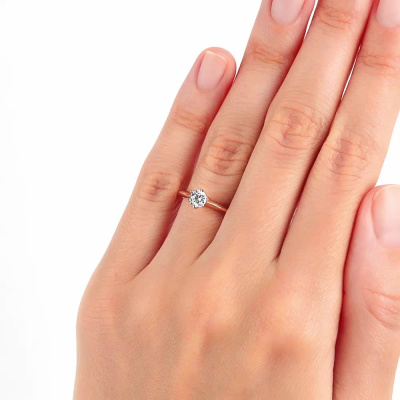 Кольцо с 1 бриллиантом природным, 0.314 карат, огранка круг 57 граней, цвет 3, чистота 6, тип огранки А; Розовое и белое золото 585 пробы.