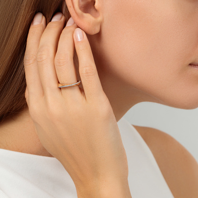 Кольцо с 31 бриллиантом природным, 0.11 карат, огранка круг 57 граней, цвет 3, чистота 6, тип огранки А; Розовое золото 585 пробы.
