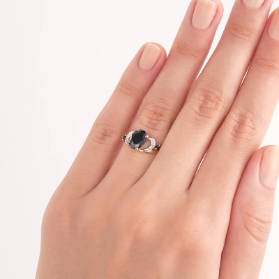 Это уникальное кольцо из розового золота 585 пробы станет великолепным дополнением к вашему стилю. Оно украшено 6 бриллиантами общим весом 0,013 карата: • Цвет — 2 • Чистота — 2 • Тип огранки — Б Кроме того, кольцо украшено 2 черными шпинелями общим весом 0,087 карата и 1 черной шпинелью весом 1,406 карата. Это элегантное украшение прекрасно подойдет для особых моментов и сделает ваш образ неповторимым.