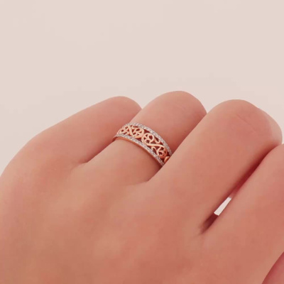 Кольцо с 54 бриллиантами природными, 0.16 карат, огранка круг 17 граней, цвет 2, чистота 2, тип огранки Б; Розовое золото 585 пробы.