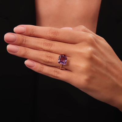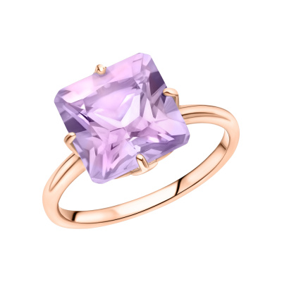 Кольцо с 1 аметистом природным, 3.84 карат; Розовое золото 585 пробы.