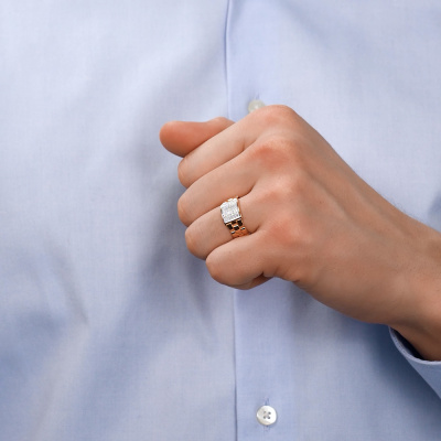 Мужская печатка — дополняющий аксессуар, знак престижа и статуса. Она может быть атрибутами стиля, социального положения и благосостояния. Более того, именно такой вариант кольца добавляет образу мужественности. Стиль кольца должен гармонировать с образом, вписываться в него. Покупая свою первую печатку, лучше остановиться на простом, более классическом варианте. Строгая геометрическая форма одинаково хорошо будет сочетаться и с деловым костюмом, и с фраком, и со спортивной одеждой.