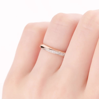 Кольцо с 3 бриллиантами природными, 0.03 карат, огранка круг 57 граней, цвет 3, чистота 6, тип огранки А; 5 бриллиантами природными, 0.03 карат, огранка круг 57 граней, цвет 3, чистота 6, тип огранки А; 5 бриллиантами природными, 0.02 карат, огранка круг 17 граней, цвет 2, чистота 2, тип огранки Б; Розовое золото 585 пробы.