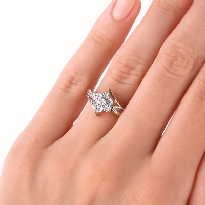 Кольцо с 7 бриллиантами, 0.03 карат, огранка круг 17 граней, цвет 2, чистота 2, тип огранки А; 6 бриллиантами, 0.01 карат, огранка круг 17 граней, цвет 2, чистота 2, тип огранки А; Розовое и белое золото 585 пробы.