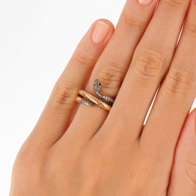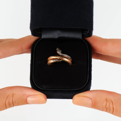 Золотое кольцо с бриллиантами, бриллиантами и бриллиантами чёрными природными