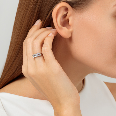 Кольцо «Бриллианты Якутии» с 14 бриллиантами, 0.663 карат, огранка круг 57 граней, цвет 3, чистота 7, тип огранки А; Белое золото 585 пробы.