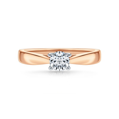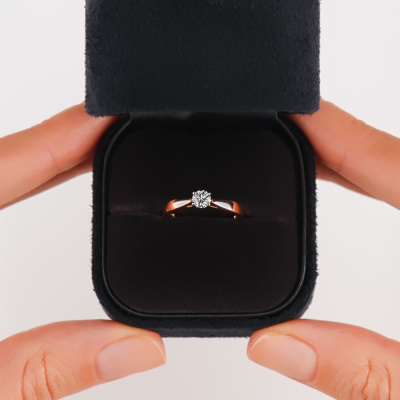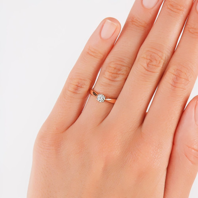Кольцо с 1 бриллиантом природным, 0.24 карат, огранка круг 57 граней, цвет 5, чистота 7, тип огранки А; Розовое золото 585 пробы.