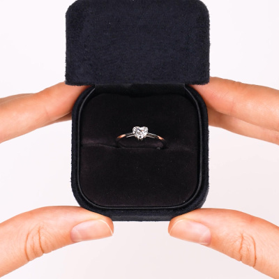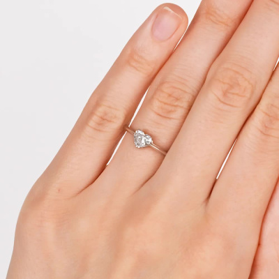 Кольцо с 1 бриллиантом природным, 0.5 карат, огранка сердце 57 граней, цвет 3, чистота 6, тип огранки А; Белое золото 585 пробы.