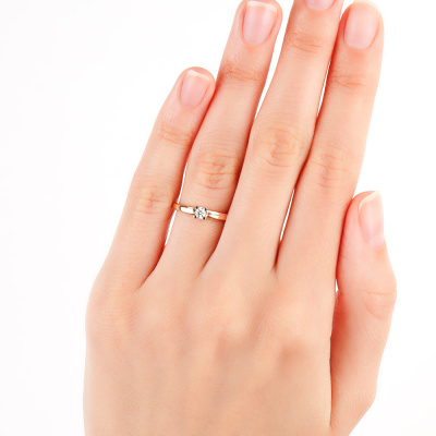 Кольцо с 1 бриллиантом природным, 0.097 карат, огранка круг 57 граней, цвет 3, чистота 6, тип огранки А; Розовое золото 585 пробы.