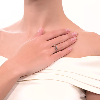 Кольцо с 22 бриллиантами природными, 0.04 карат, огранка круг 17 граней, цвет 2, чистота 2, тип огранки А; Розовое золото 585 пробы.