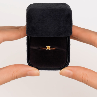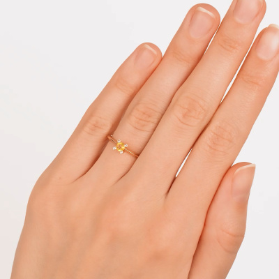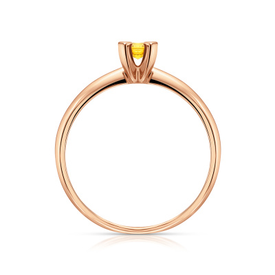 Кольцо с 4 бриллиантами природными, 0.011 карат, огранка круг 17 граней, цвет 2, чистота 2, тип огранки Б; 1 сапфиром желтым природным, 0.22 карат; Розовое золото 585 пробы.