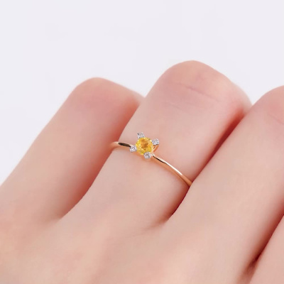 Кольцо с 1 сапфиром желтым, 0.211 карат; 4 бриллиантами, 0.01 карат, огранка круг 17 граней, цвет 2, чистота 2, тип огранки Б; Розовое золото 585 пробы.