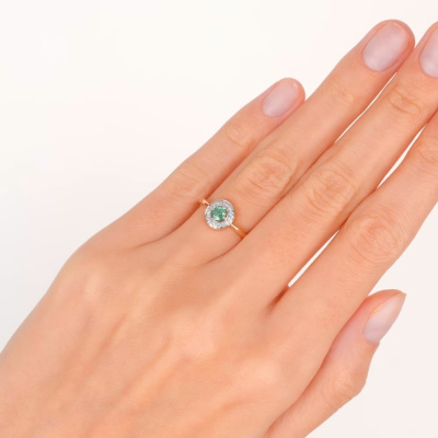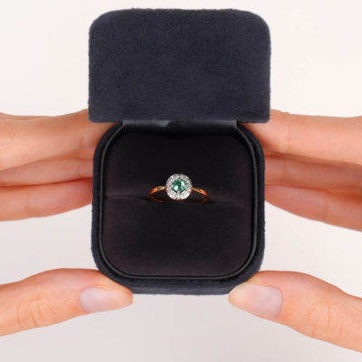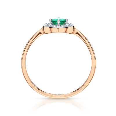 Кольцо из розового золота 585 пробы, украшенно 15 бриллиантами общим весом 0.039 карата и 1 изумрудом весом 0.155 карата. Характеристики бриллиантов: • Цвет — 2 • Чистота — 2 • Тип огранки — Б Кольцо идеально подходит для особых моментов или повседневной носки. Будьте в центре внимания с этим восхитительным украшением!