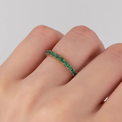 Кольцо с 14 изумрудами общим весом 0.834 карата. Характеристика камней: • Цвет — 3 • Чистота — 3 • Тип огранки — В Украшение выполнено из розового золота 585 пробы, что придает ему неповторимый шарм и элегантность. Это кольцо станет идеальным аксессуаром для особых случаев или подарком для особенного человека.