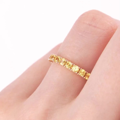 Кольцо с 14 сапфирами желтыми, 1.062 карат; Розовое золото 585 пробы.