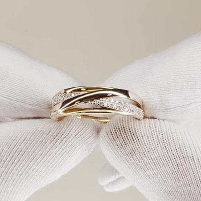 Кольцо с 54 бриллиантами природными, 0.11 карат, огранка круг 17 граней, цвет 2, чистота 2, тип огранки А; Розовое золото 585 пробы.