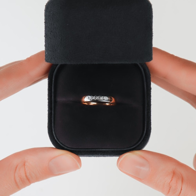 Кольцо с 5 бриллиантами природными, 0.03 карат, огранка круг 17 граней, цвет 3, чистота 6, тип огранки А; Розовое золото 585 пробы.