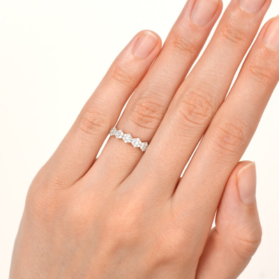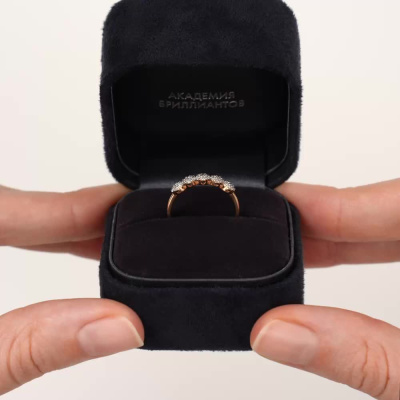 Кольцо с 5 бриллиантами природными, 0.05 карат, огранка круг 57 граней, цвет 3, чистота 6, тип огранки А; 30 бриллиантами природными, 0.18 карат, огранка круг 57 граней, цвет 3, чистота 6, тип огранки А; Розовое золото 585 пробы.