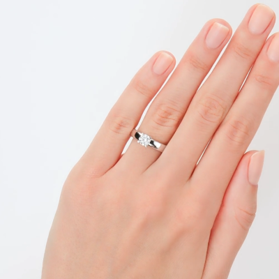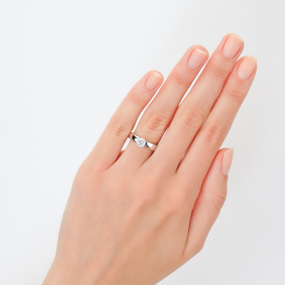 Кольцо с 1 бриллиантом природным, 0.5 карат, огранка круг 57 граней, цвет 4, чистота 9, тип огранки А; Белое золото 585 пробы.
