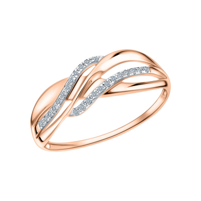 Кольцо с 24 бриллиантами природными, 0.1 карат, огранка круг 17 граней, цвет 2, чистота 2, тип огранки Б; Розовое золото 585 пробы.